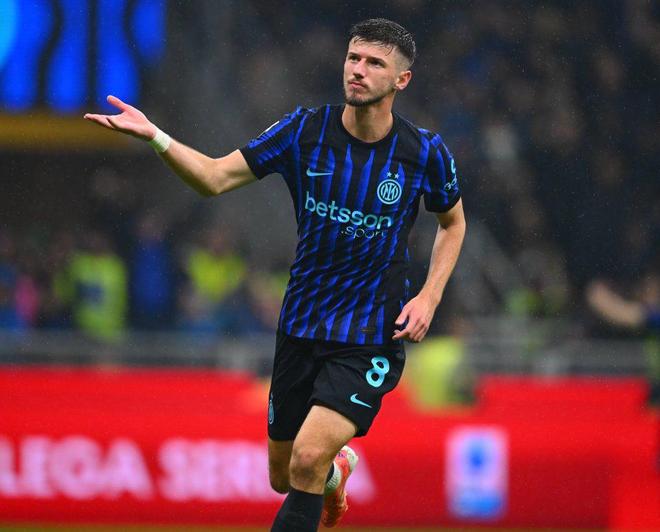 第66分钟,巴雷拉右路送出妙传,恰尔汗奥卢禁区外调整一步起脚远射,皮球在门前弹地窜入球网,国米1-0领先;
