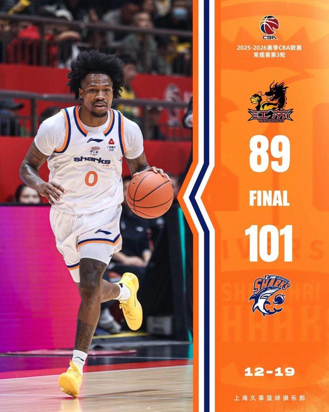 北京时间12月19日,CBA常规赛第3轮,客场作战的上海久事男篮以101比89战胜江苏肯帝亚男篮,后者遭遇联赛三连败。另一场比赛中,主场作战的广东东阳光以97比94击败广州朗肽海本,取得三连胜。